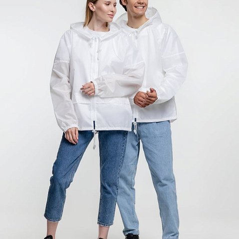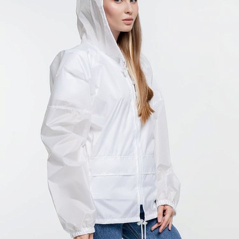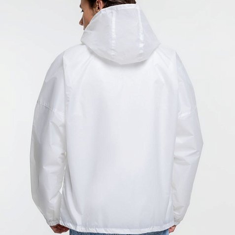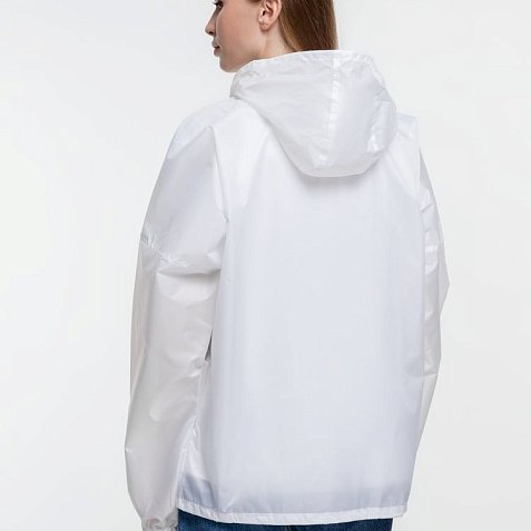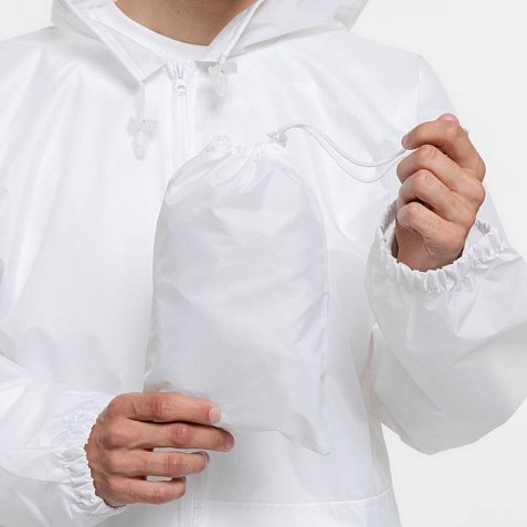 Укороченный дождевик свободного кроя из ткани таффета с влагозащитным покрытием. Складывается в мешочек — удобно брать с собой.