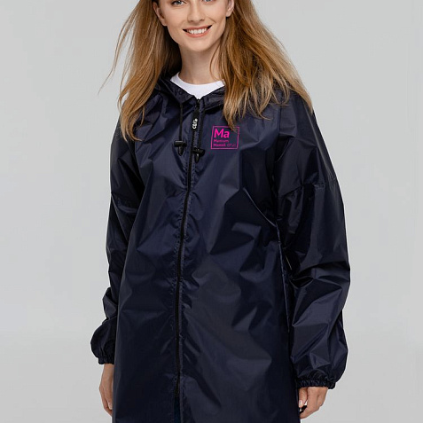 Плащ-дождевик из ткани таффета на молнии с капюшоном. Складывается в мешочек — удобно брать с собой.