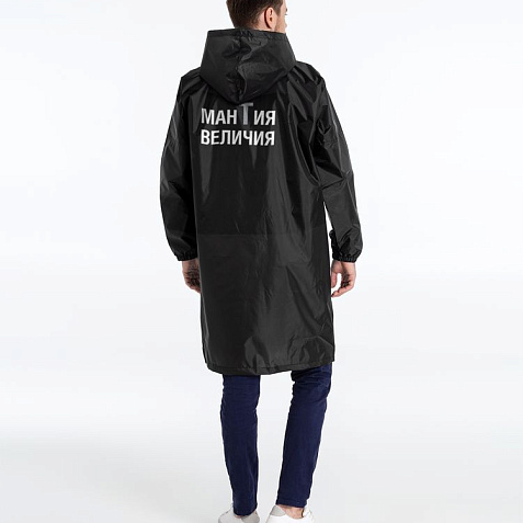 Плащ-дождевик на молнии с капюшоном. Складывается в мешочек — удобно брать с собой.