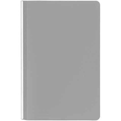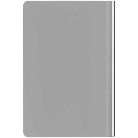 Зауженный ежедневник с гибкой обложкой и металлическим корешком, выполнен из материала Soft Touch, серый СС, дополнен серебристым обрезом блока и ляссе.