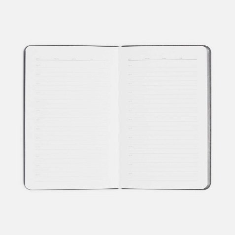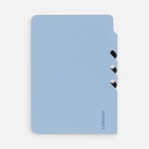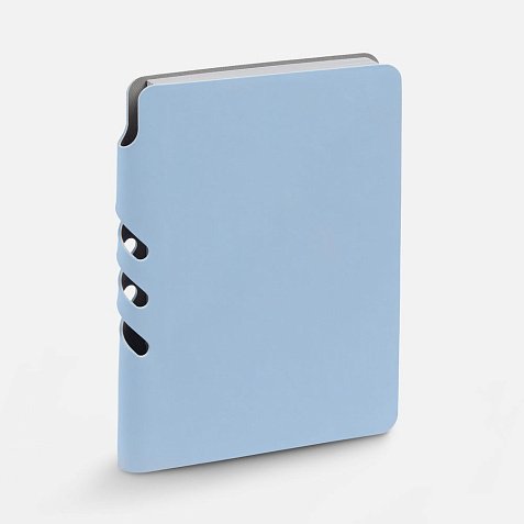 Ежедневник с гибкой обложкой выполнен из материала Soft Touch, голубой JJ и серого Latte (внутренняя часть обложки).