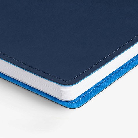Ежедневник с гибкой обложкой, выполнен из материалов Soft Touch, синий и Nice Touch, голубой.