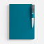 Ежедневник с гибкой обложкой из материала Soft Touch, цвет морской волны II и Latte, морская волна (внутренний материал), дополнен петелькой для ручки из покровного материала, капталом, ляссе и закрашенным срезом обложки в цвет материала.