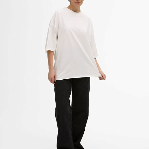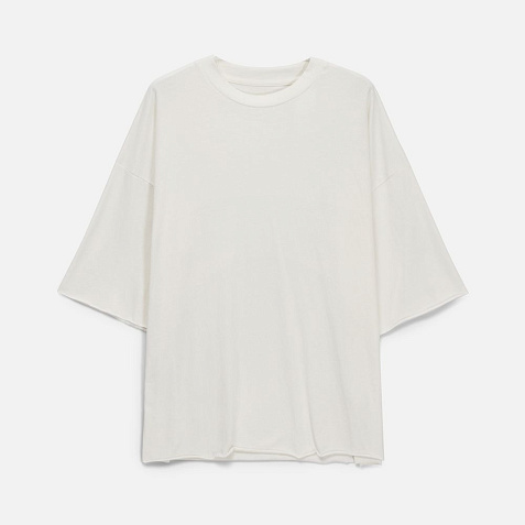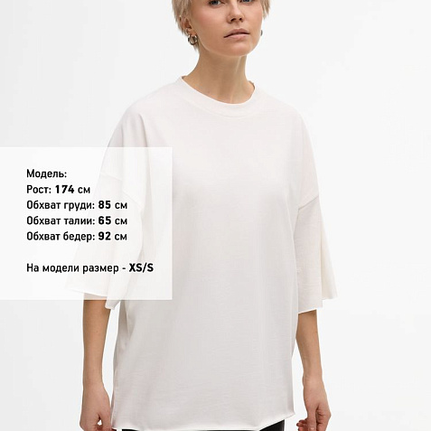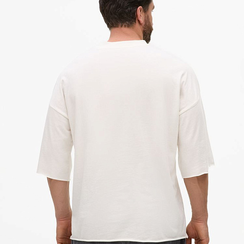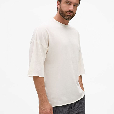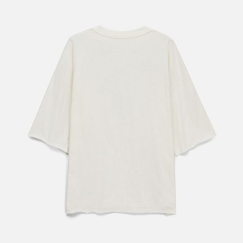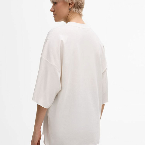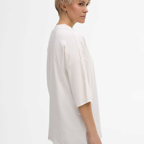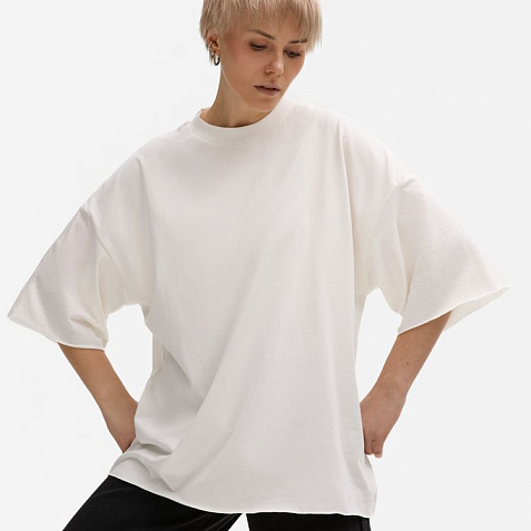 Футболка унисекс свободного кроя со спущенным плечом.