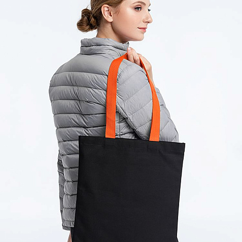 Холщовая сумка BrighTone, черная с оранжевыми ручками