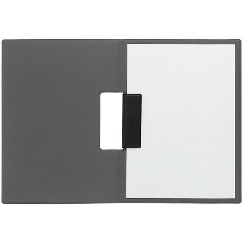 Папку можно использовать в стандартном вертикальном формате или перегнуть обложку и поставить в качестве таблички горизонтально. Магнитный клип удерживает до 10 листов.