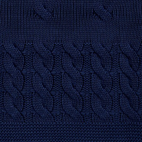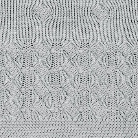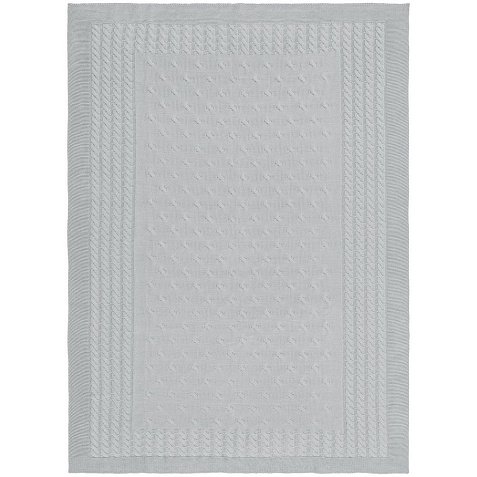 Модель: однотонный плед с фактурной вязкой, которая позволяет сделать его воздушным и объемным. Чередуя различные типы петель на гладком полотне, можно вывязать любую графику — логотип, текст, товарный знак.