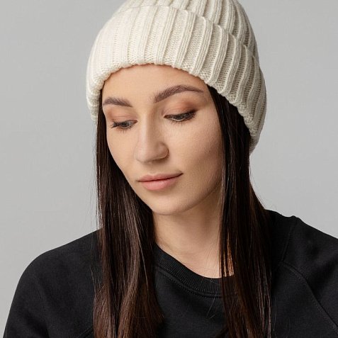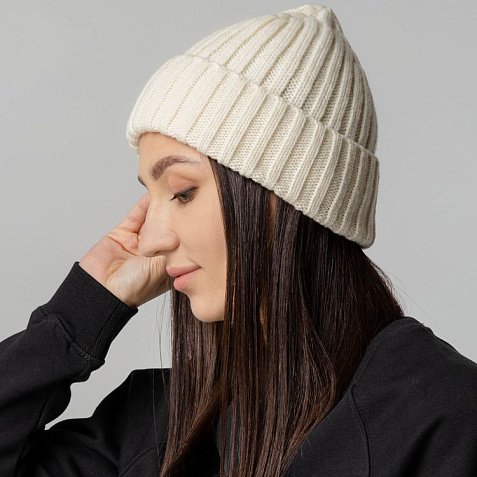 Модная шапка-бини, связанная резинкой, универсальна и подходит для самых непосредственных и легких образов.