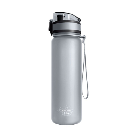 Матовое бархатистое покрытие бутылки приятно на ощупь, широкий ремешок дополнительно фиксирует бутылку во время использования, защитный колпачок не даст воде пролиться в сумке.