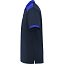 Рубашка-поло с коротким рукавом в двухцветной комбинации. Воротник и половина рукава отделана рибом 1x1. Планка на 2 пуговицы. Усиленные закрытые швы по воротнику. Боковые разрезы внизу. Контрастные плечи и детали. Дополнительный контрастный карман.