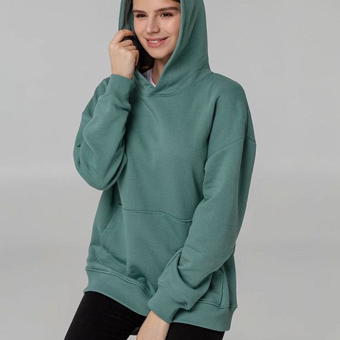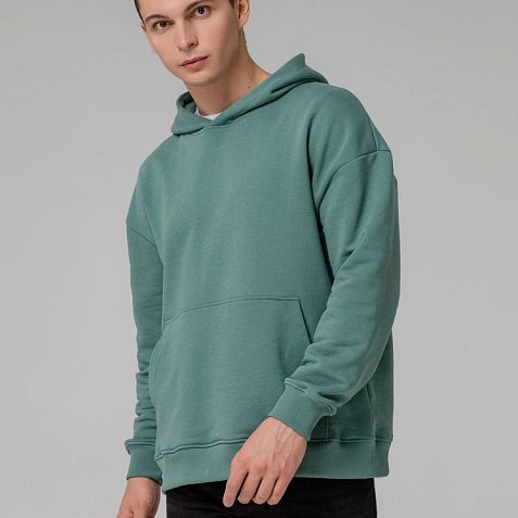 Худи оверсайз унисекс со спущенным плечом и карманом-кенгуру.