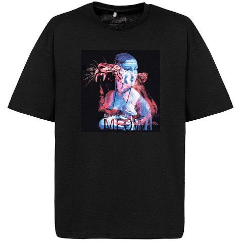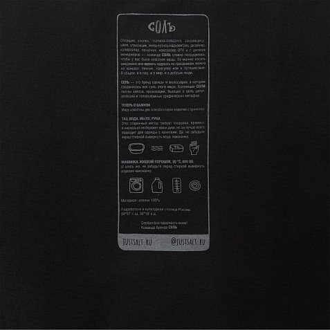 Принт с информацией о бренде и инструкцией по уходу за изделием на изнаночной стороне футболки.