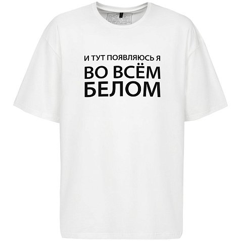 Принт с информацией о бренде и инструкцией по уходу за изделием на изнаночной стороне футболки.