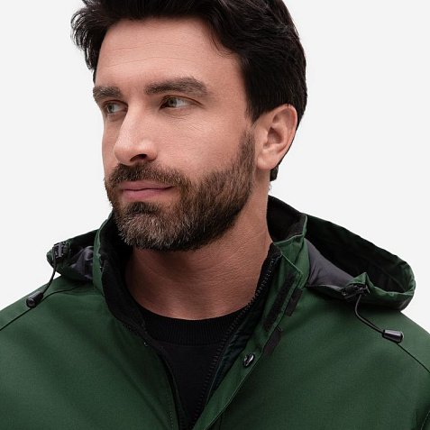 - Капюшон с утягивающими шнурами, складывается и убирается в воротник