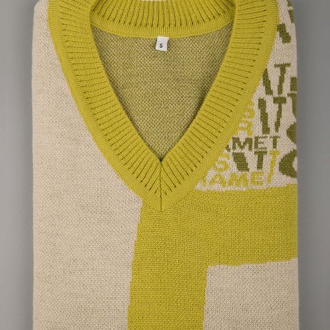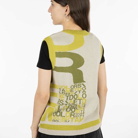 Модель: жилет жаккардовой вязки, плотный и теплый, 2–3 цвета нитей, гладкая поверхность. На бейках горловины и проймы возможна отделка в виде контрастных полос (не более 3-х цветов).