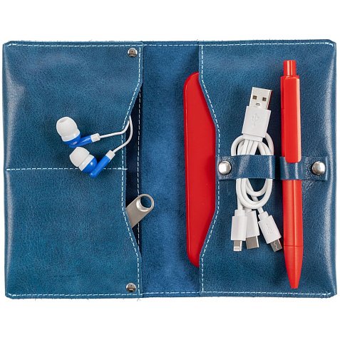 В органайзере есть два крепления на кнопке и четыре кармана разных размеров для проводов, наушников и зарядных устройств.